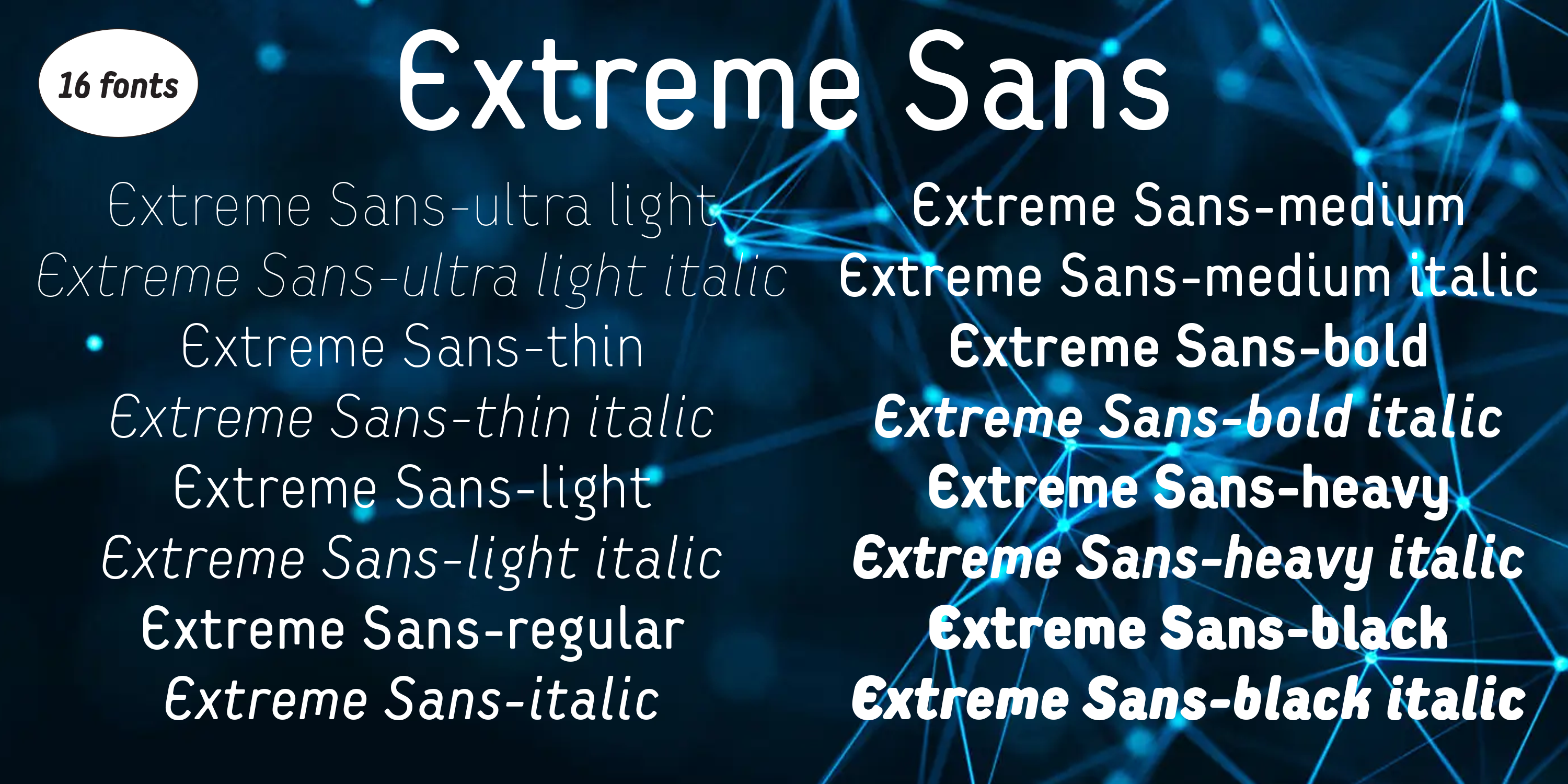 Extreme Sans is a contemporary design based on rounded terminals and clean, crisp lines. It has an extremely large-range of weights and styles, making it ideal for a variety of purposes.