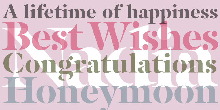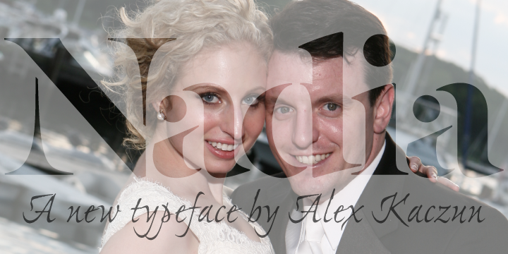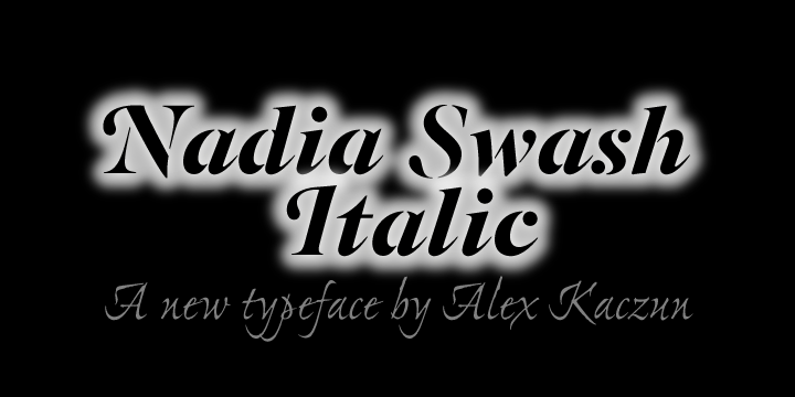 ItalicNadia is an original design by Alex Kaczun. It is a modern stencil interpretation of Granjon Oldstyle, highlighted by large elongated serifs, generous proportions and a large x-height. It is an elegant display for headlines as well as text.