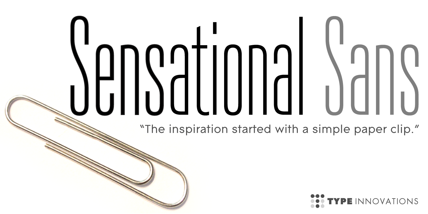 Regular"Sensational Sans" is an original design by Alex Kaczun. The inspiration started with the shape of a "paper clip". Simple and elegant. A condensed sans serif that's, well... just sensational!